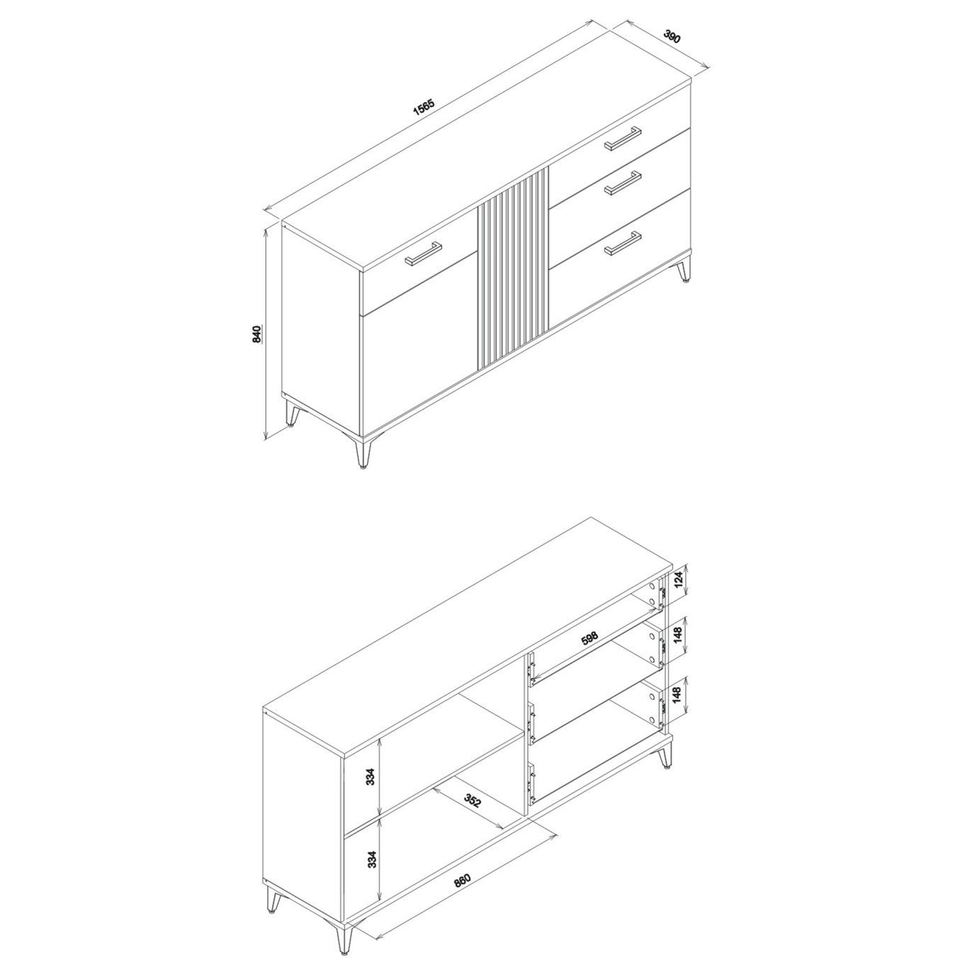 Rozměry: š:156,5 x v:84 x h:39cm