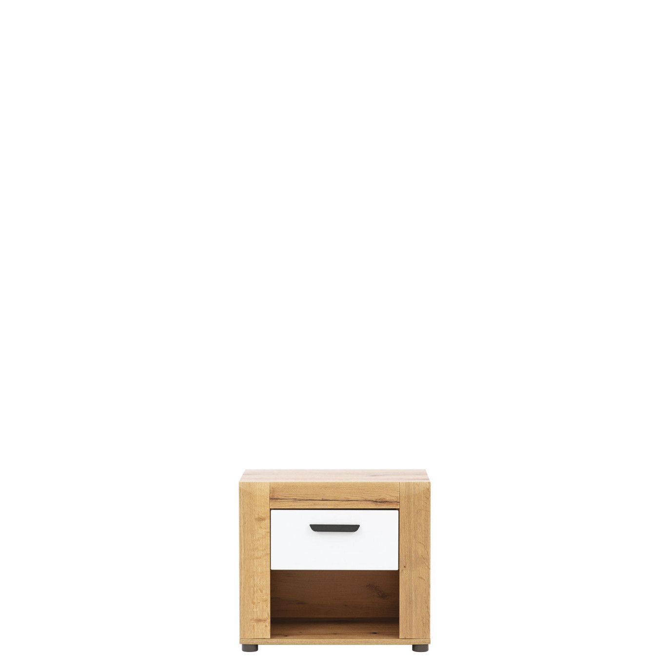 Moderní a velmi praktický noční stolek se šuplíkem a přihrádkou.