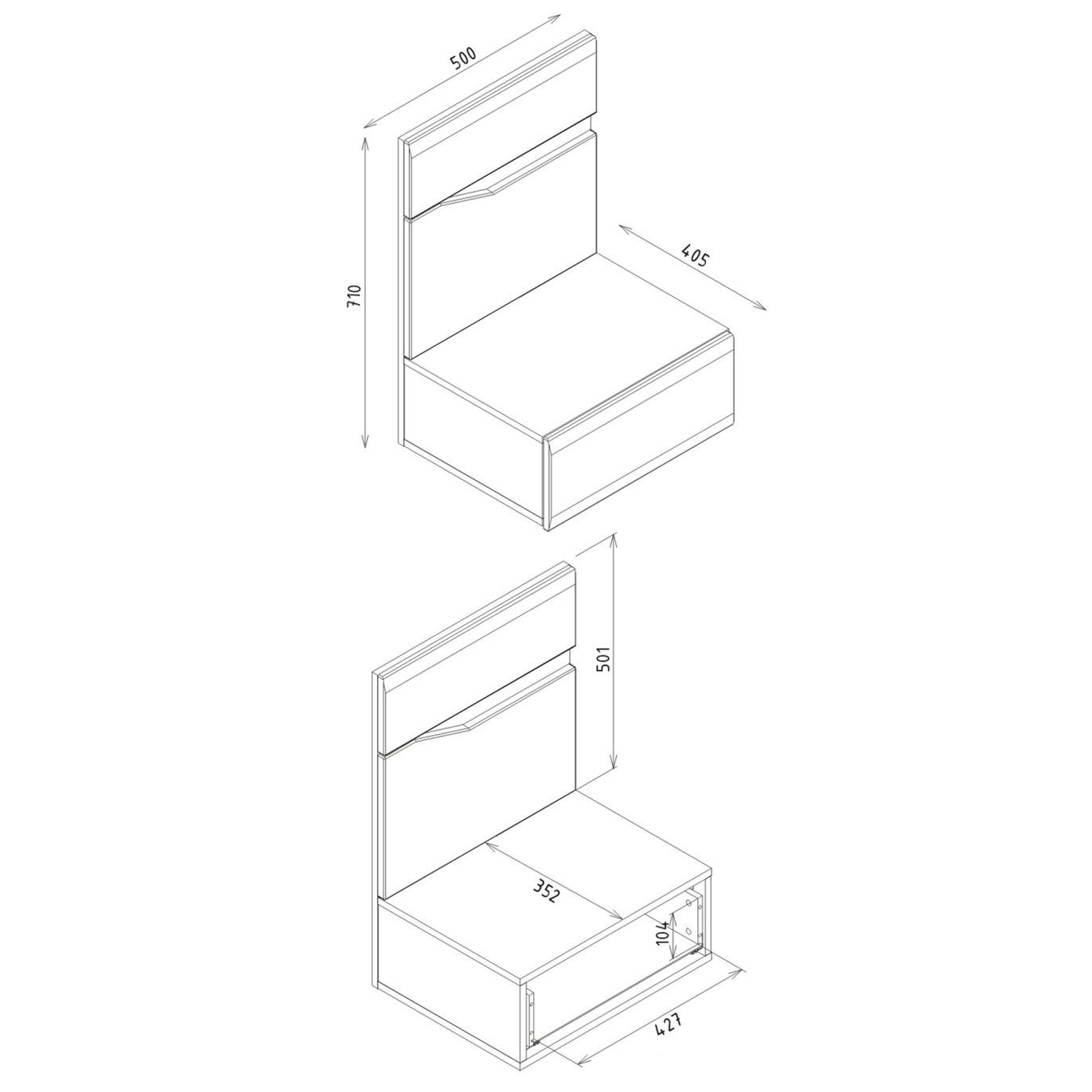 Moderní a velmi praktický závěsný noční stolek se šuplíkem.