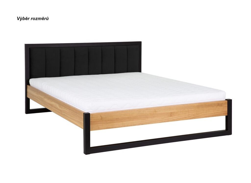 Kvalitní postel vyrobená z kvalitního dubového masivu. Designová postel kde se snoubí teplo přirodního masivního dřeva a chlad tmavého kovu, černá čalouněná opěrka hlavy.