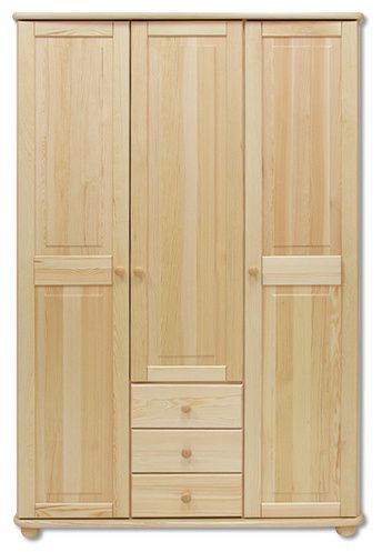 Skříň je vyrobená z kvalitního borovicového masivu, skříň je ze 2/3 šatní a 1/3 policová, uprostřed jsou 3šuplíky