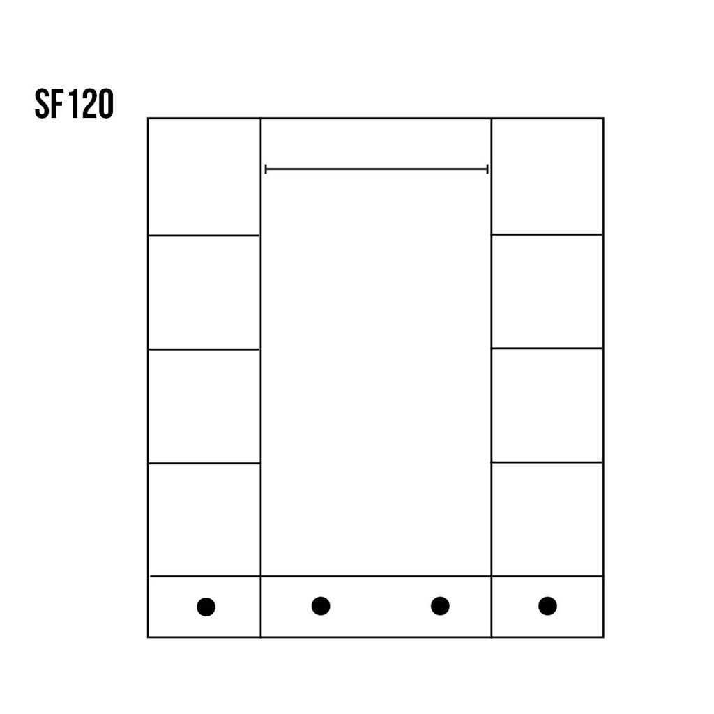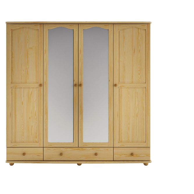 Skříň je vyrobená z kvalitního borovicového masivu, skříň je po stranách policová a uprostřed šatní, dole jsou šuplíky,