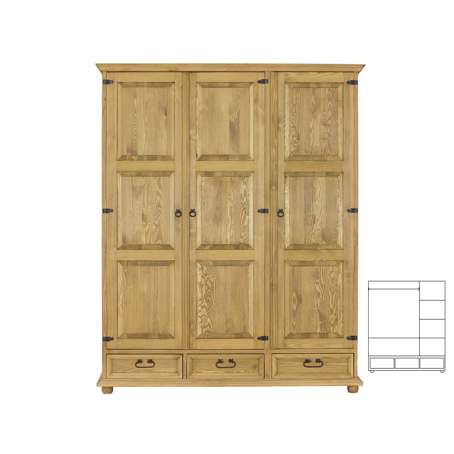Skříň v rustikálním stylu s kovovými panty a kovovými úchytkami se zajisté stane ozdobou Vašeho interiéru, skříň je vyrobená z kvalitního borovicového masivu ošetřeného kvalitním přírodním voskem, který zvyšuje jeho životnost. Boky jsou hladké a tloušťka rámu je 25 mm.
