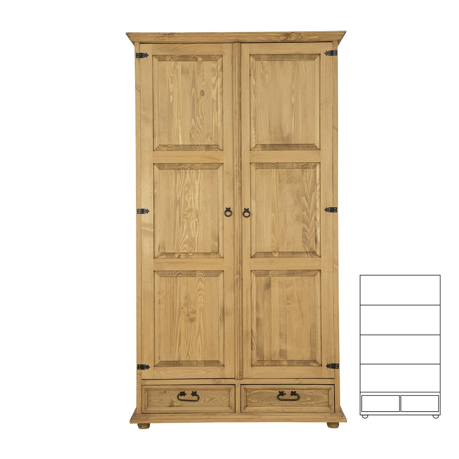 Skříň v rustikálním stylu s kovovými panty a kovovými úchytkami se zajisté stane ozdobou Vašeho interiéru, skříň je vyrobená z kvalitního borovicového masivu ošetřeného kvalitním přírodním voskem, který zvyšuje jeho životnost. Boky jsou hladké a tloušťka rámu je 25 mm.