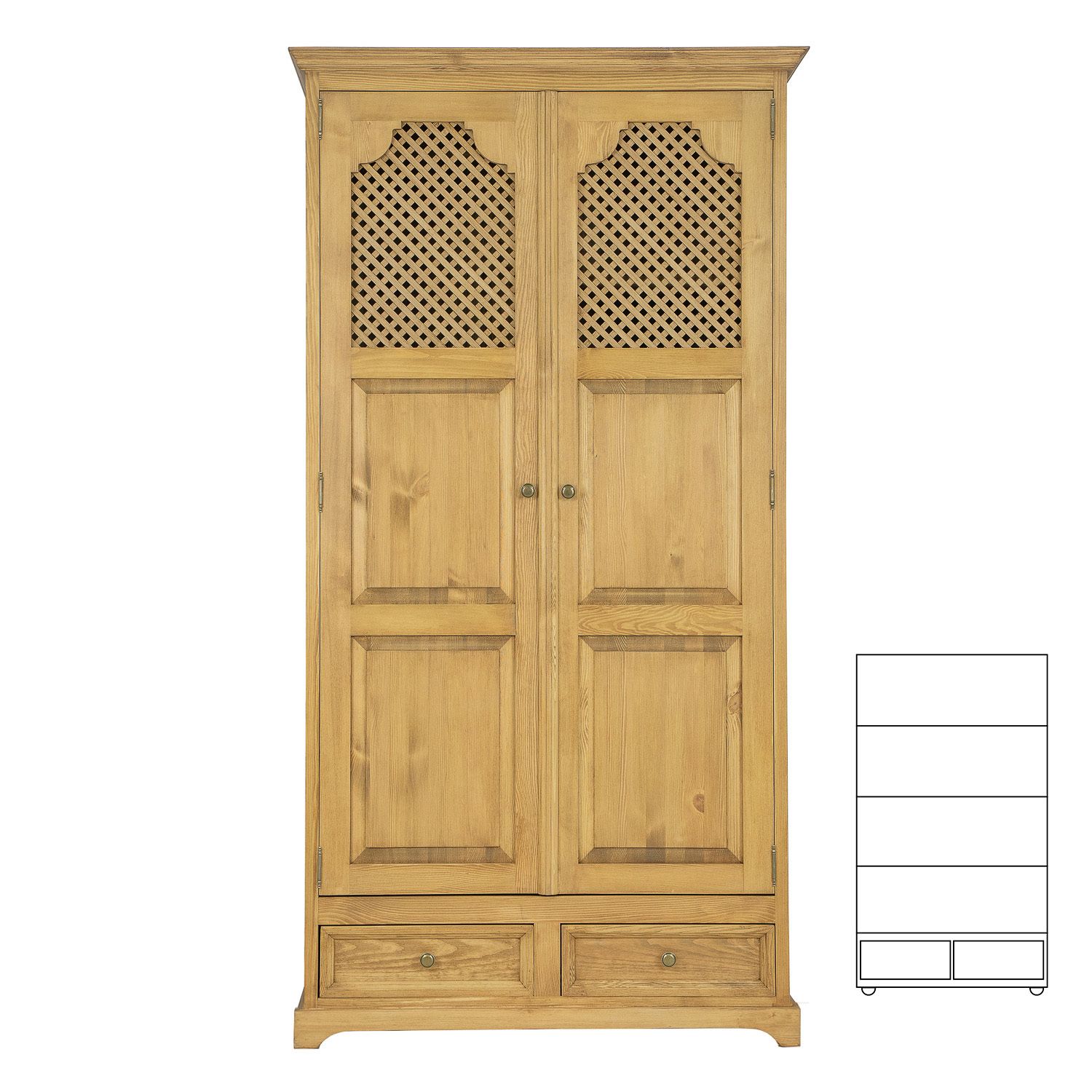 Skříň v rustikálním stylu s kovovými panty a kovovými úchytkami se zajisté stane ozdobou Vašeho interiéru, skříň je vyrobená z kvalitního borovicového masivu ošetřeného kvalitním přírodním voskem, který zvyšuje jeho životnost. Boky jsou hladké a tloušťka rámu je 25 mm.
