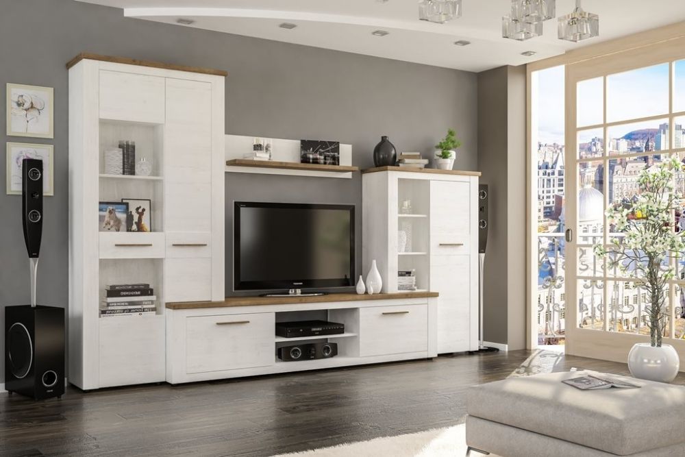 Moderní a svěží obývací stěna působí elegantním dojmem a nabízí nám dostatečné množství úložného prostoru.