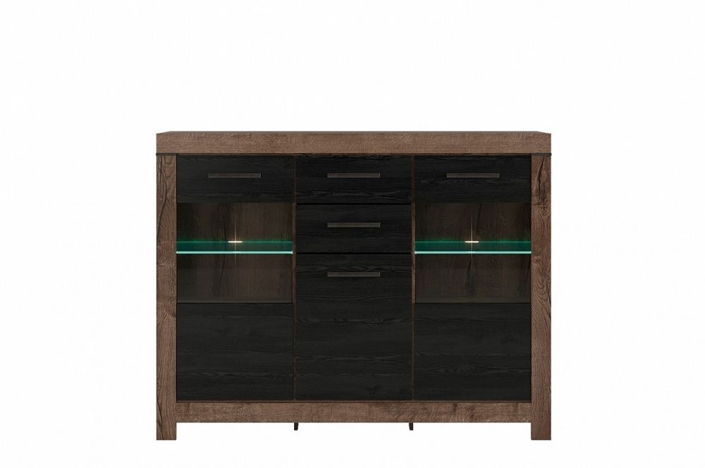 Komoda velká prosklená je kvalitní komoda má tiché dovírání dvířek a v ceně je působivé LED osvětlení