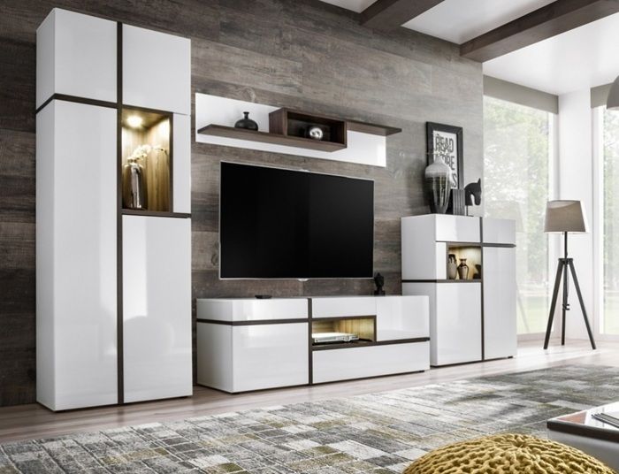 Obývací stěna Cross sektorová komplet za zvýhodněnou cenu bílá/bílý lesk