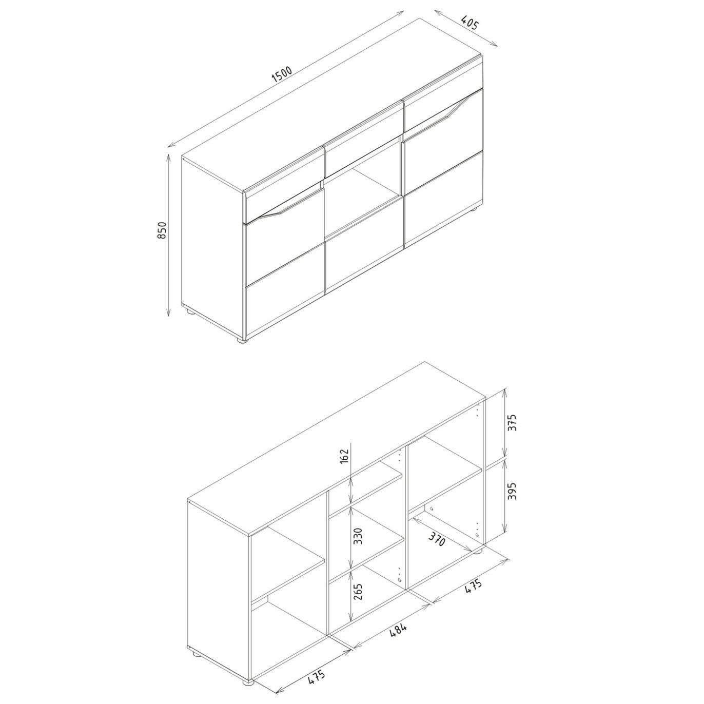 Rozměry: š:150 x v:85 x h:40,5cm