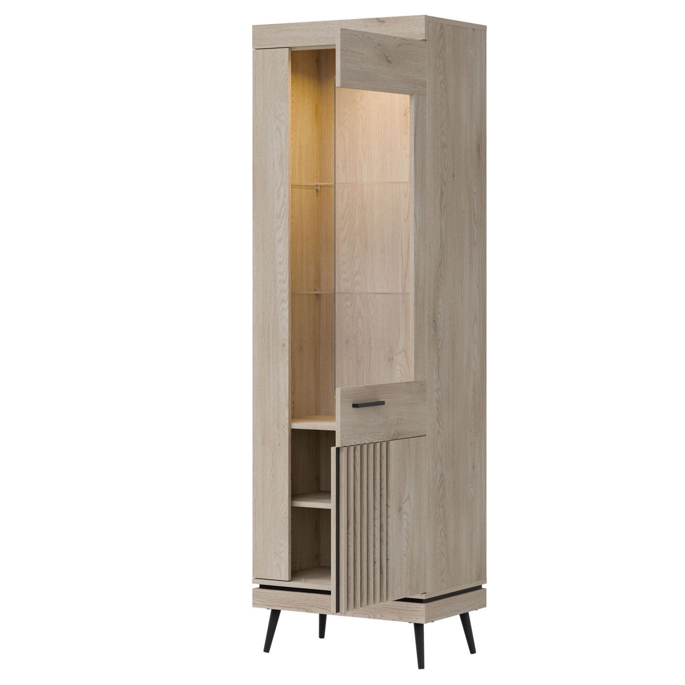 Vitrína je univerzální, dvířka lze namontovat vpravo nebo vlevo, do vitríny si můžete dokoupit LED osvětlení za 330,-Kč, v případě zájmu napište prosím do poznámky.