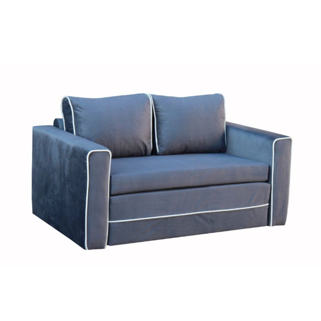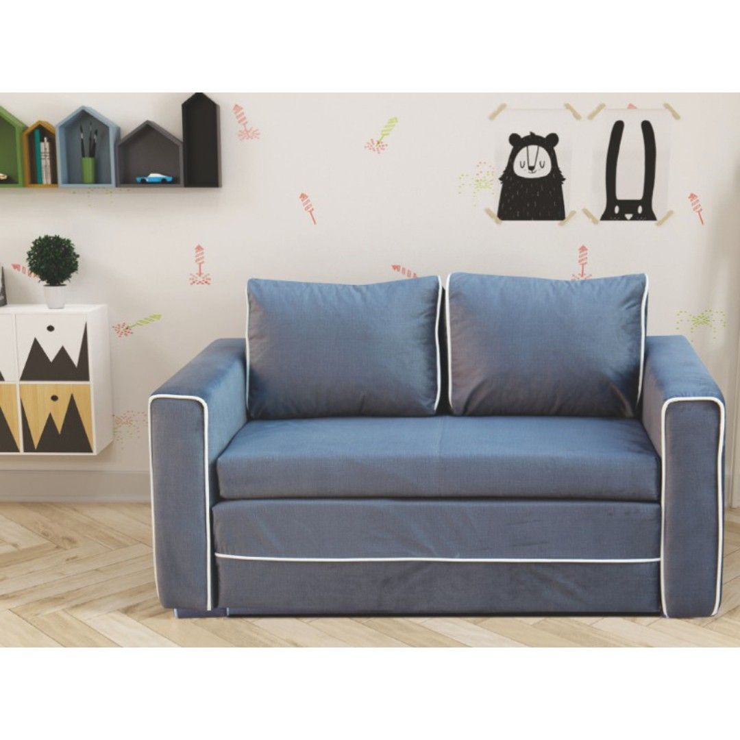 Moderní rozkládací dvoumístná pohovka nabízí nejen pohodlí při sezení, ale také skrytý úložný prostor a při rozložení lůžko pro příležitostné přespání. Základem pohovky je pevná dřevěná kostra. Pohodlí při sezení poskytuje vlnitá pružina a PUR pěna.
