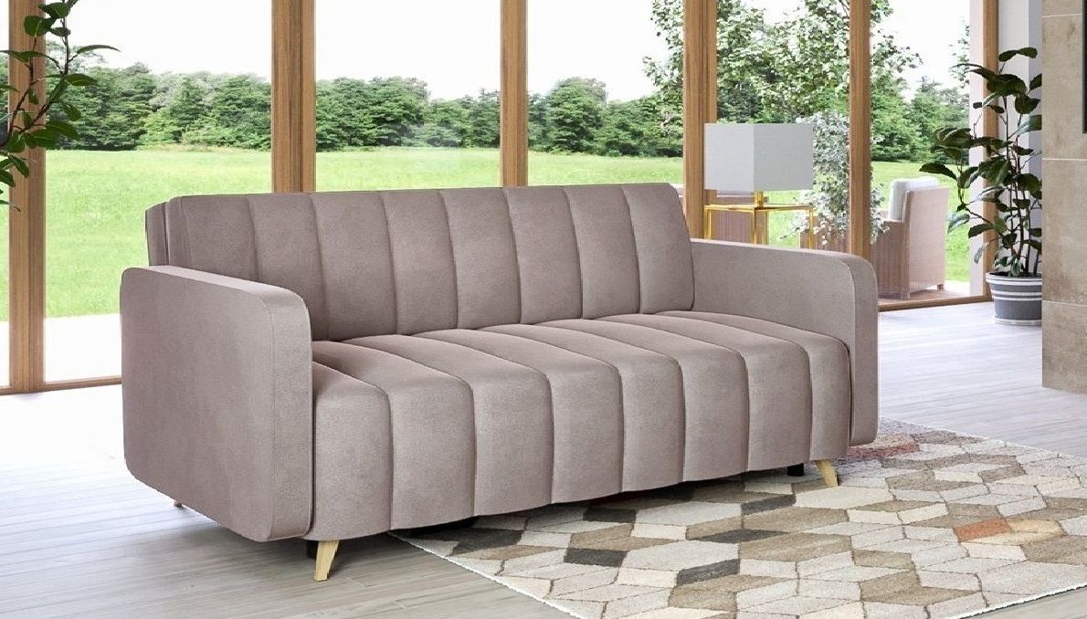Elegantní celočalouěná rozkládací pohovka s úložným prostorem na dřevěných nožkách s efektním prošitím pohovky, jednoduchý rozklad. Velká plocha na spaní 160 x 190cm. Výška sedu 45cm, což zaručí pohodlné vstávání.