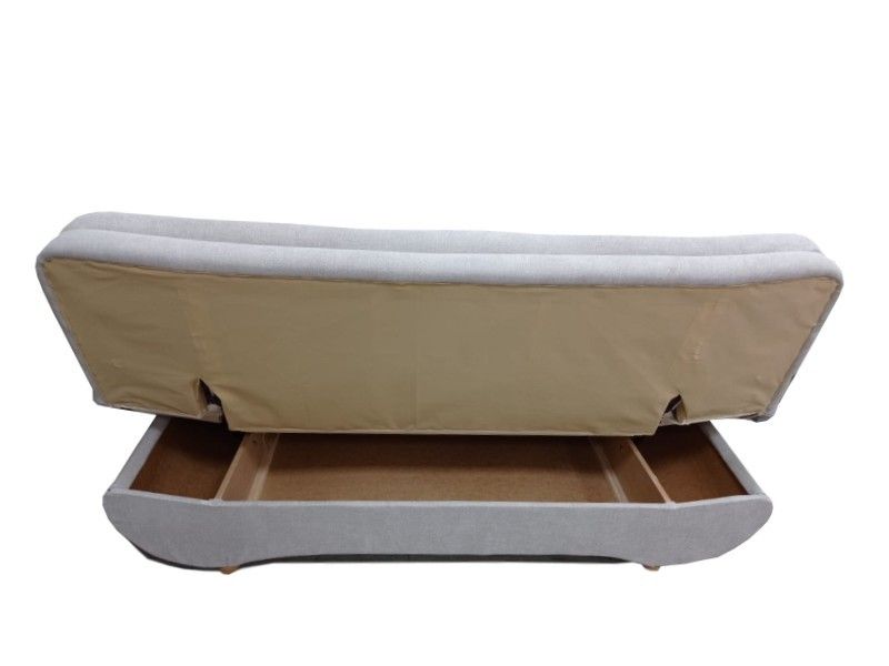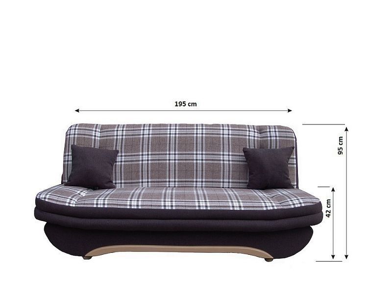 Rozkládací pohovka s úložným prostorem je pohodlná na sezení, výška sedu je 42cm. V ceně pohovky jsou také dva dekorační polštářky. Vyrábí se v několika barevných provedeních.