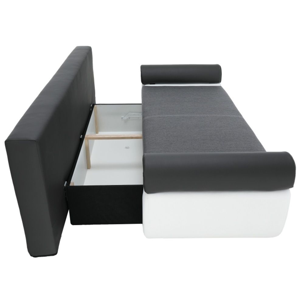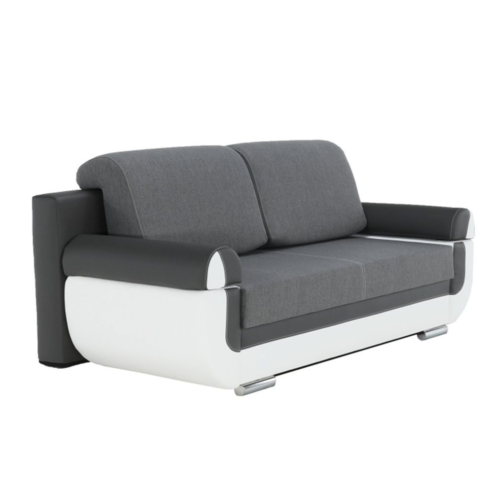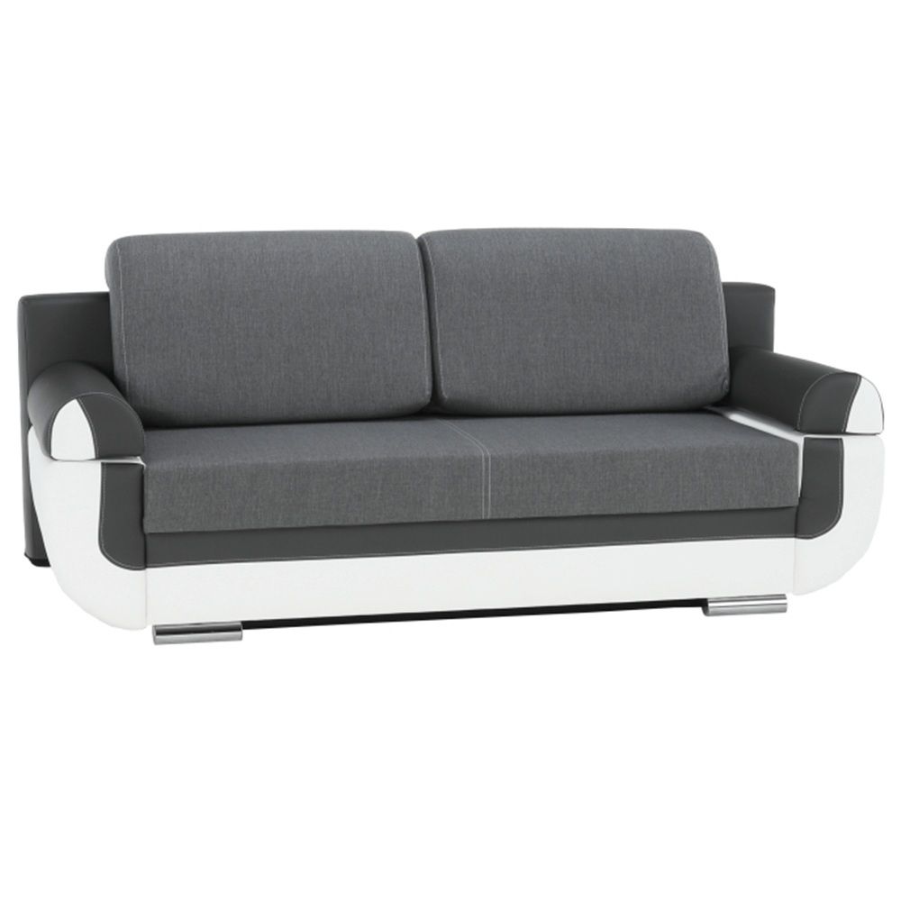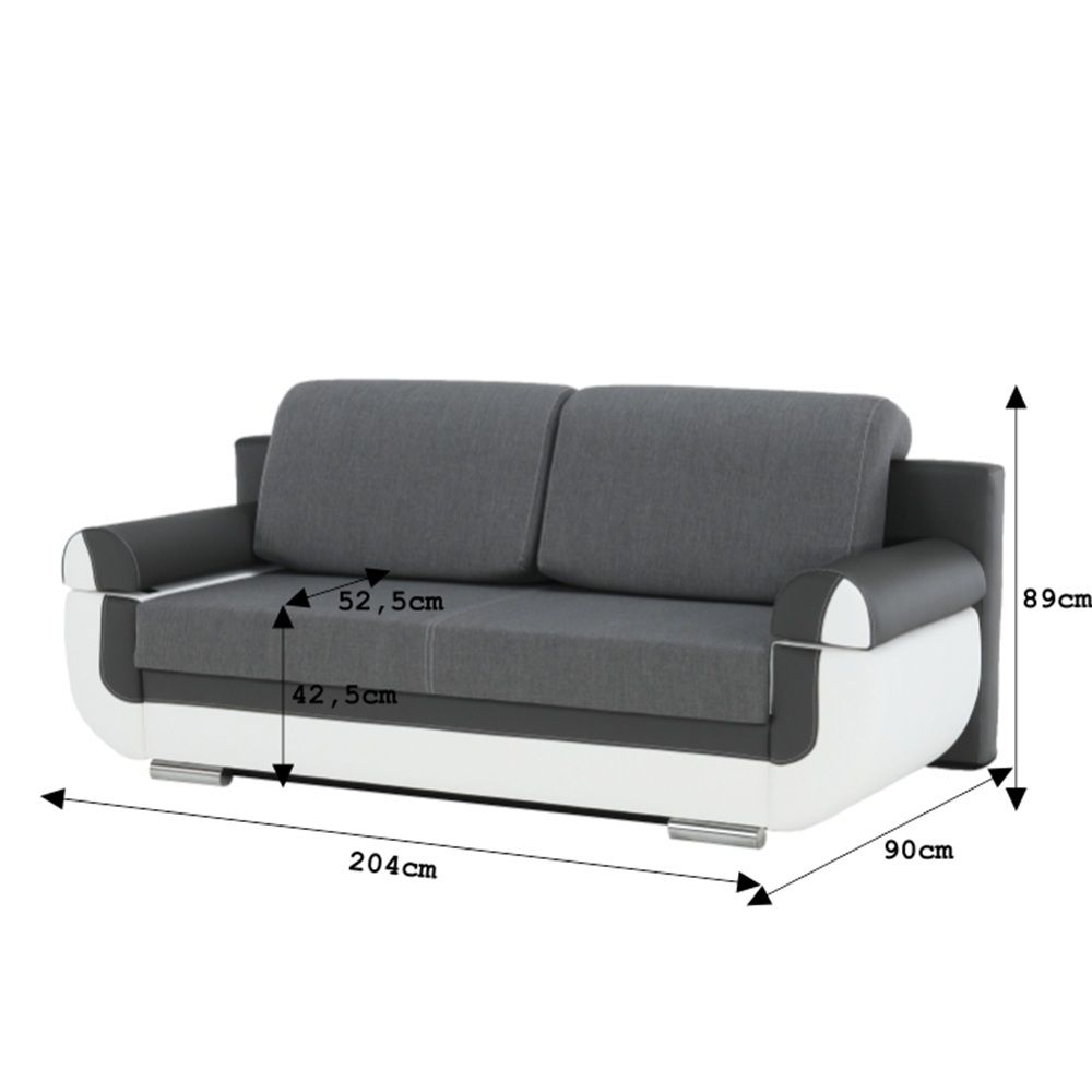 Rozkládací pohovka s úložným prostorem ekokůže bílá/šedá látka Hugo.Rozměry ŠxVxH: 204x89x90 cm, plocha na spaní: ŠxD: 142x204 cm. Výška spodního prostoru od podlahy: 5 cm