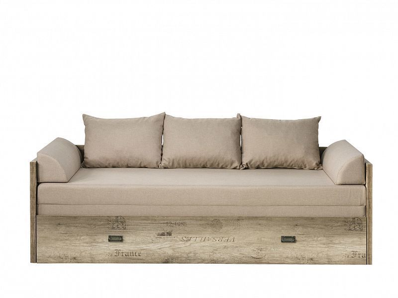 Kvalitní, moderní, elegantní a velmi praktická rozkládací pohovka s úložným prostrem. Výsuvná část postele je na plastových kolečkách a její součástí je úložný prostor. Komplet, kterým je postel tvořena obsahuje korpus, rozkládací matraci a polštáře. Matrace má rozměry š x d: 75 (rozložená 150) x 195 cm. Funkce rozkladu umožňuje pohodlné přespání dvou osob.