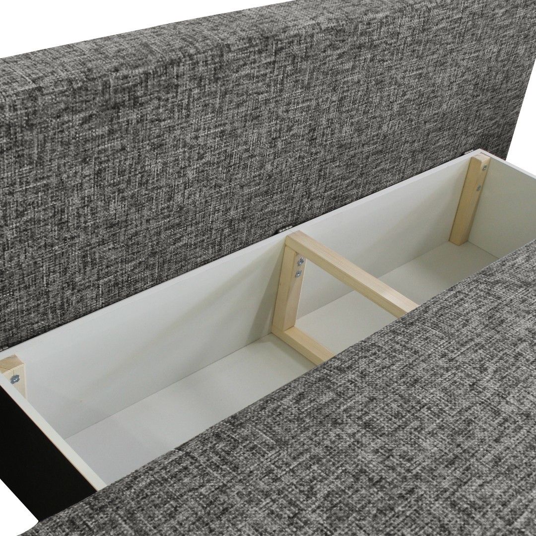 Moderní a elegantní celočalouněná rozkládací pohovka s úložným prostorem. Potahová látka je s vysokou otěruvzdorností, odolná proti žmolkování. Komfort sezení zajišťují pohodlné opěrné polštáře. Dva veliké 75x45 cm, dva menší, dekorační 75x30 cm. Na pohovce je možné také pohodlně přespat. Výška sedu je 45cm.
