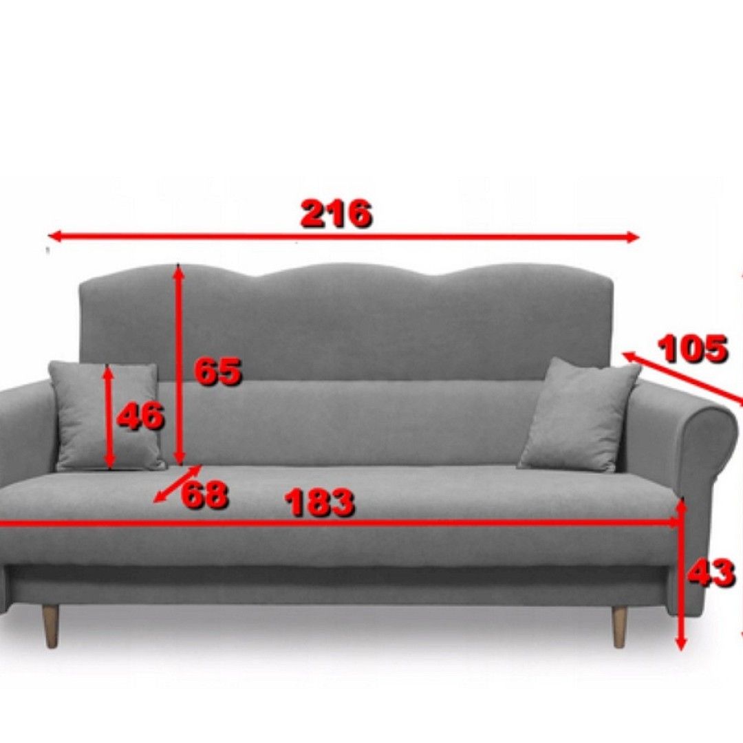 Moderní, elegantní,kvalitní a praktická rozkládací pohovka s úložným prostorem. Rozklad je velmi snadný systémem klik/klak. Dva dekorační polštářky jsou v ceně.