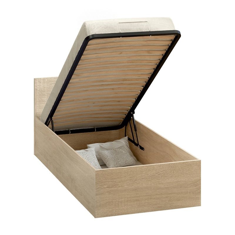 Moderní, kvalitní a velmi praktická a pohodlná postel Vám nabízí pohodlný spánek a množství úložného prostoru. Velký úložný prostor je přístupný po zvednutí kovového lamelového roštu, který je součástí postele. Cena postele je včetně zvedacího roštu bez matrace. Matraci si můžete objednat v sekci matrace. Ložná plocha je 90x200cm.