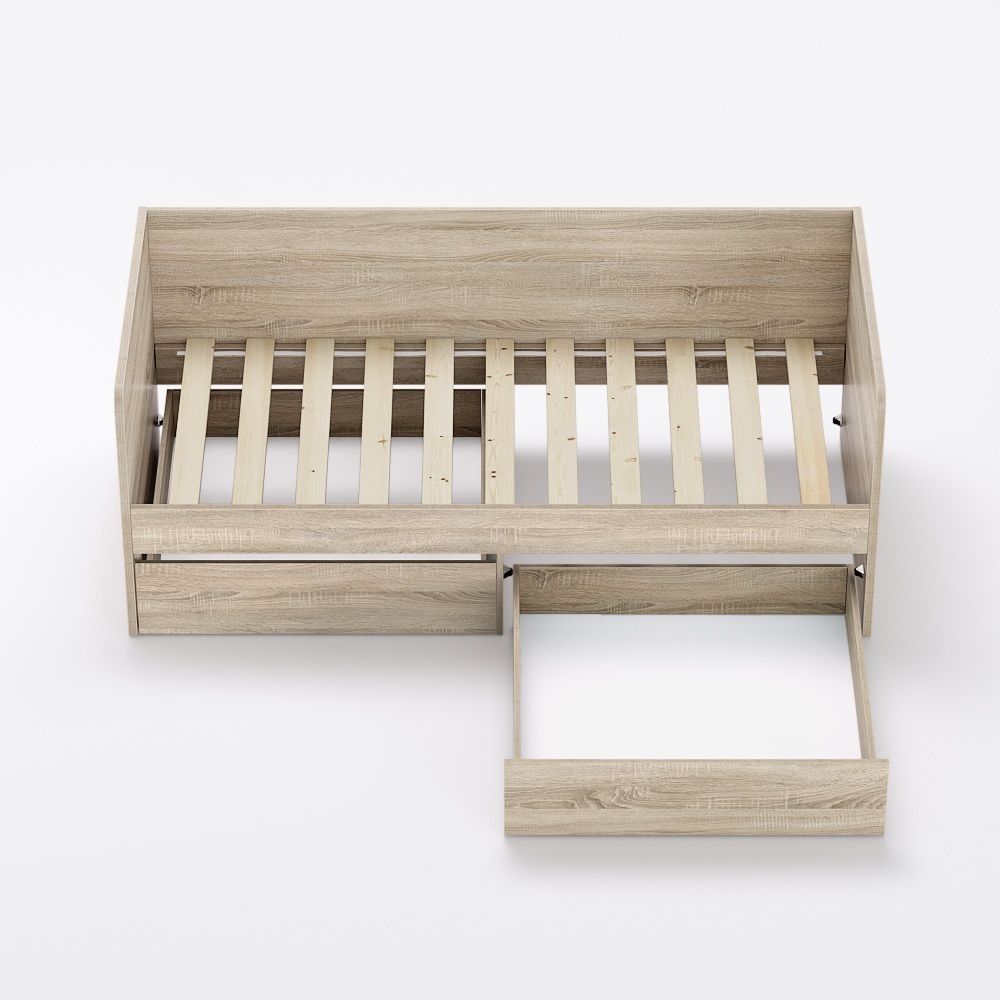 Moderní postel vyrobena z kvalitní DTD desky o šíři 16 a 25mm.Postel má okraje zaoblené,bez ostrých hran. Pod postelí jsou dva praktické šuplíky na kolečkách.V ceně postele je i rošt. Matraci je možné vybrat z naší nabídky. Postele se vyrábí v široké nabídce odstínů dřev.