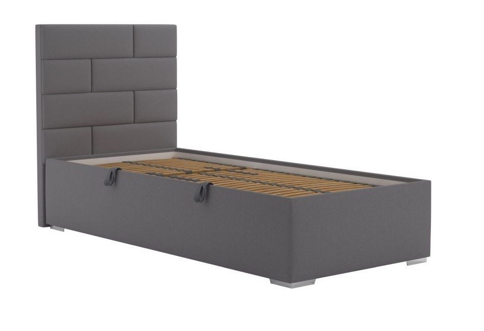Oblíbená. moderní a designová postel s vysokým čelem, cena je včetně lamelového roštu. Pevný lamelový rošt s nastavením tuhosti lamel a s popruhem proti přetížení. Rošt se skládá z 28 lamel uložených ve výkyvných kaučukových pouzdrech. Snadnější manipulaci při otevírání úložného prostoru zajišťují pružinové mechanismy. Matrace není součástí postele, je možno ji dokoupit v sekci matrace. Součástí postele je úložný prostor, který se otevírá z boku postele.