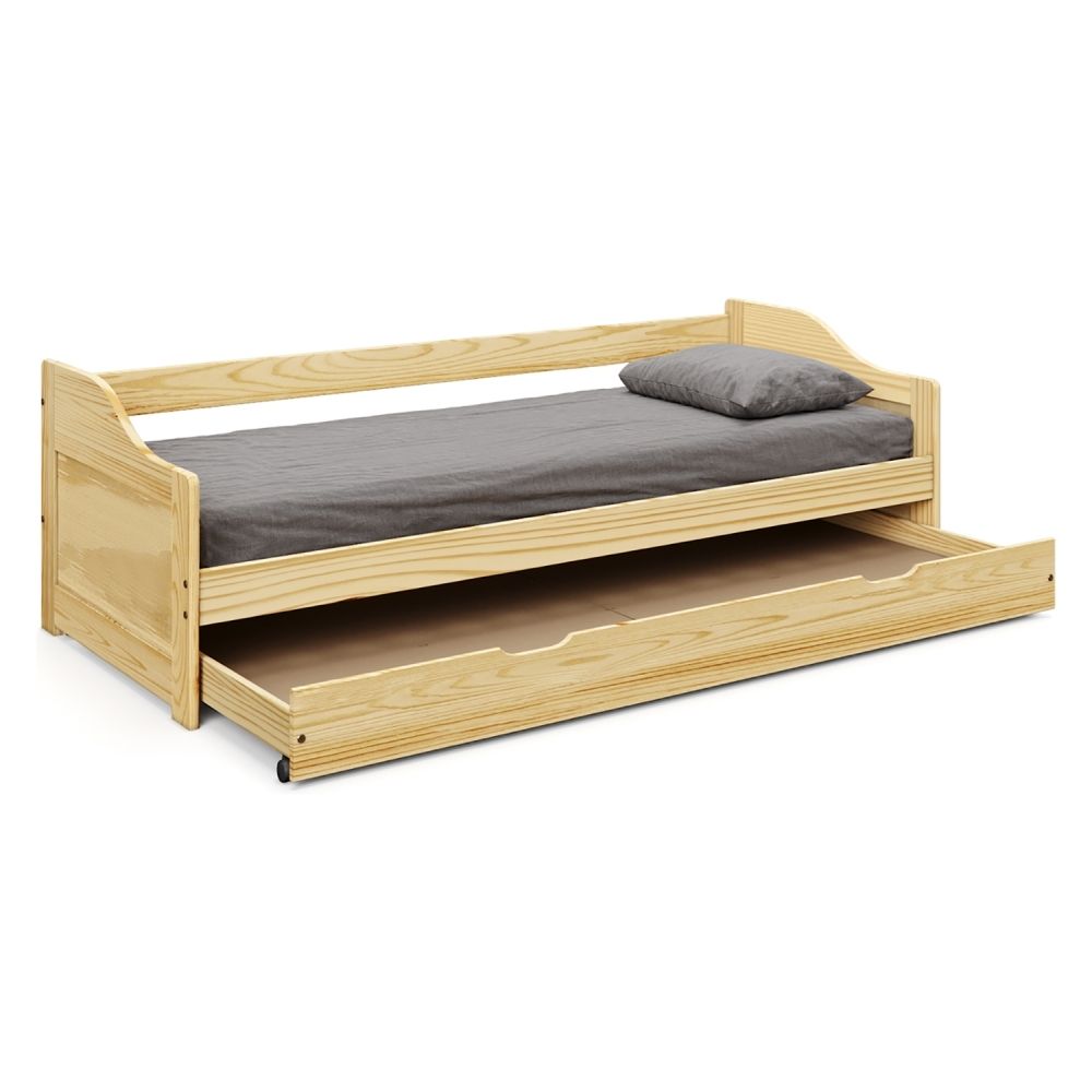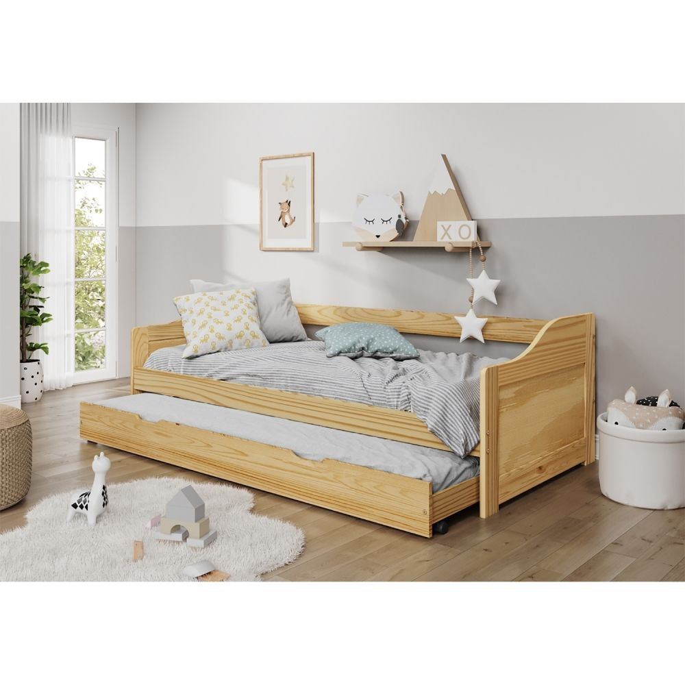 Rozkládací postel z lakovaného borovicového masivu, cena včetně 2 roštů bez matrací. Do postele se dává matrace o rozměru 90 x 200cm, do přistýlky výška matrace 10cm. Matrace je možno zakoupit v sekci matrace.