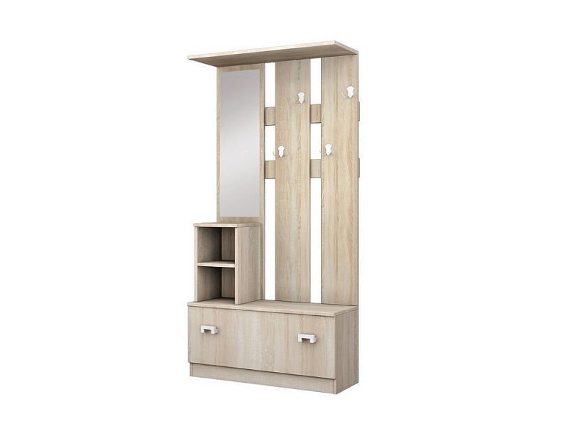 Předsíňová stěna se skládá z botníku se skříňkou a věšákového panelu se zrcadlem.