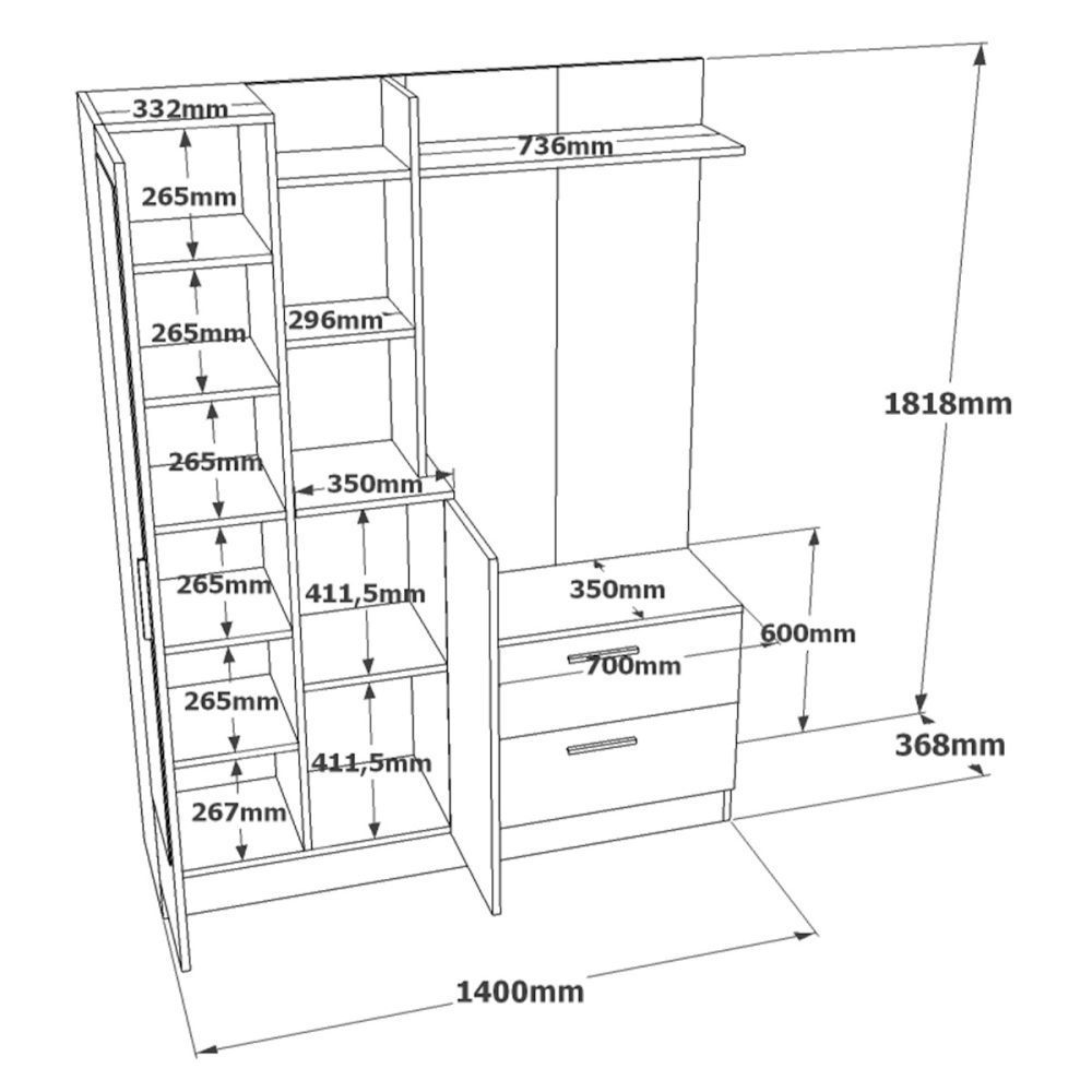 Moderní předsíň má důležitou roli v prvním dojmu o vašem domě, a to je přesně to, co předsíňová sestava skvěle zvládá. Nabízí dostatek úložného místa pro všechny Vaše potřeby, i v případě omezené plochy. světlý a prostorný dojem ve Vaší předsíni. Loftový a industriální styl poskytuje moderní vzhled s nádechem minulosti, čímž se stane centrem pozornosti Vašeho interiéru.
