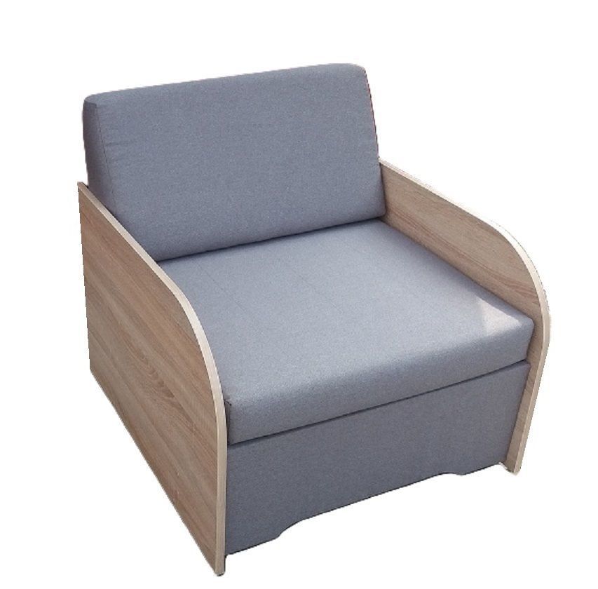 Pohodlné a kvalitní rozkládací křeslo s úložným prostorem.Vhodné na příležitostné spaní i pro komfortní sezení, křeslo lze umístit i do menších místností. V barevném provedení dřevo dub sonoma/potah šedý jednobarevný.
