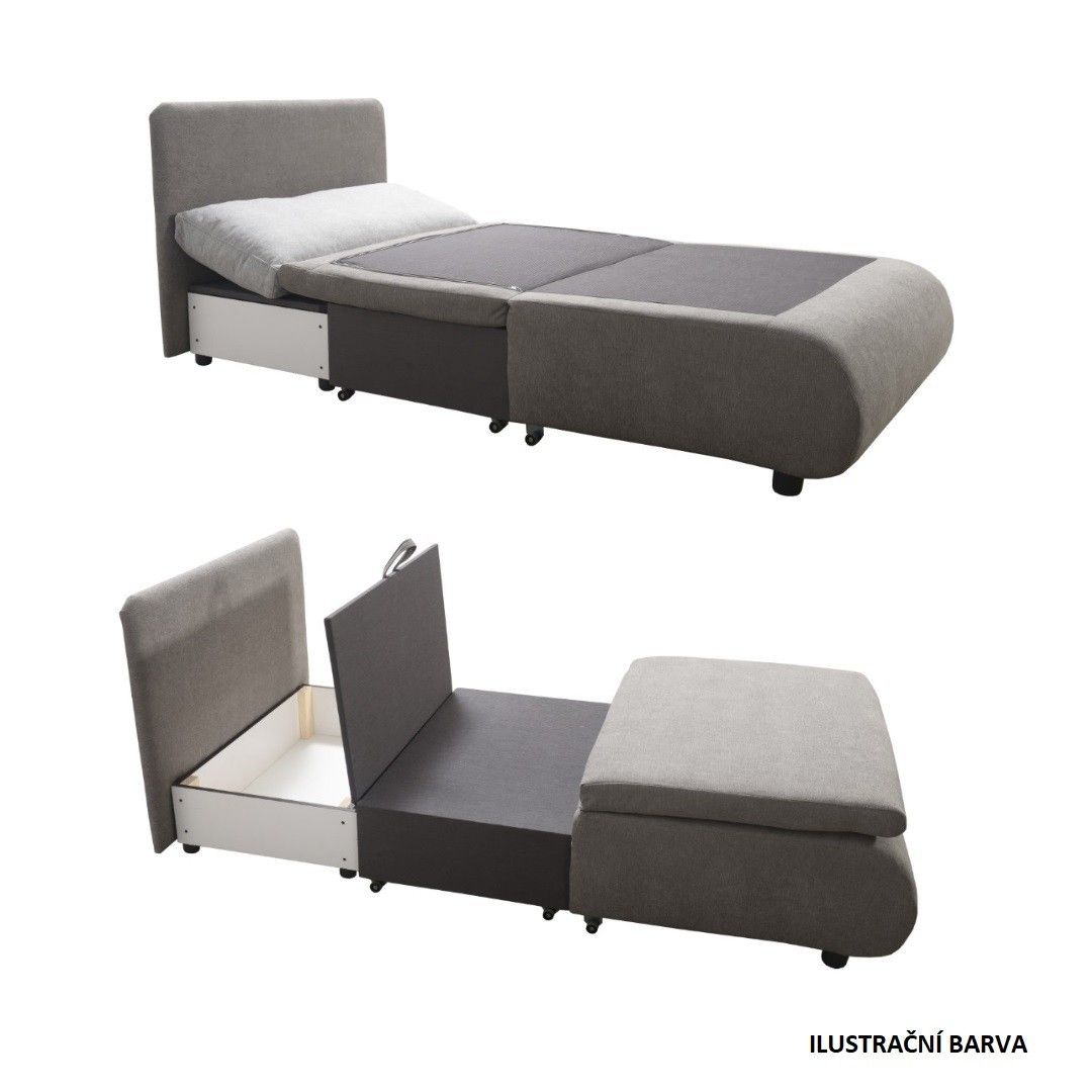 Moderní rozkládací křeslo s úložným prostorem a velkou plochou pro každodenní spaní . Křeslo je oblíbené i pro své pohodlí při sezení a jednoduchým rozkládáním. Šedá barva se hodí do každého pokoje.