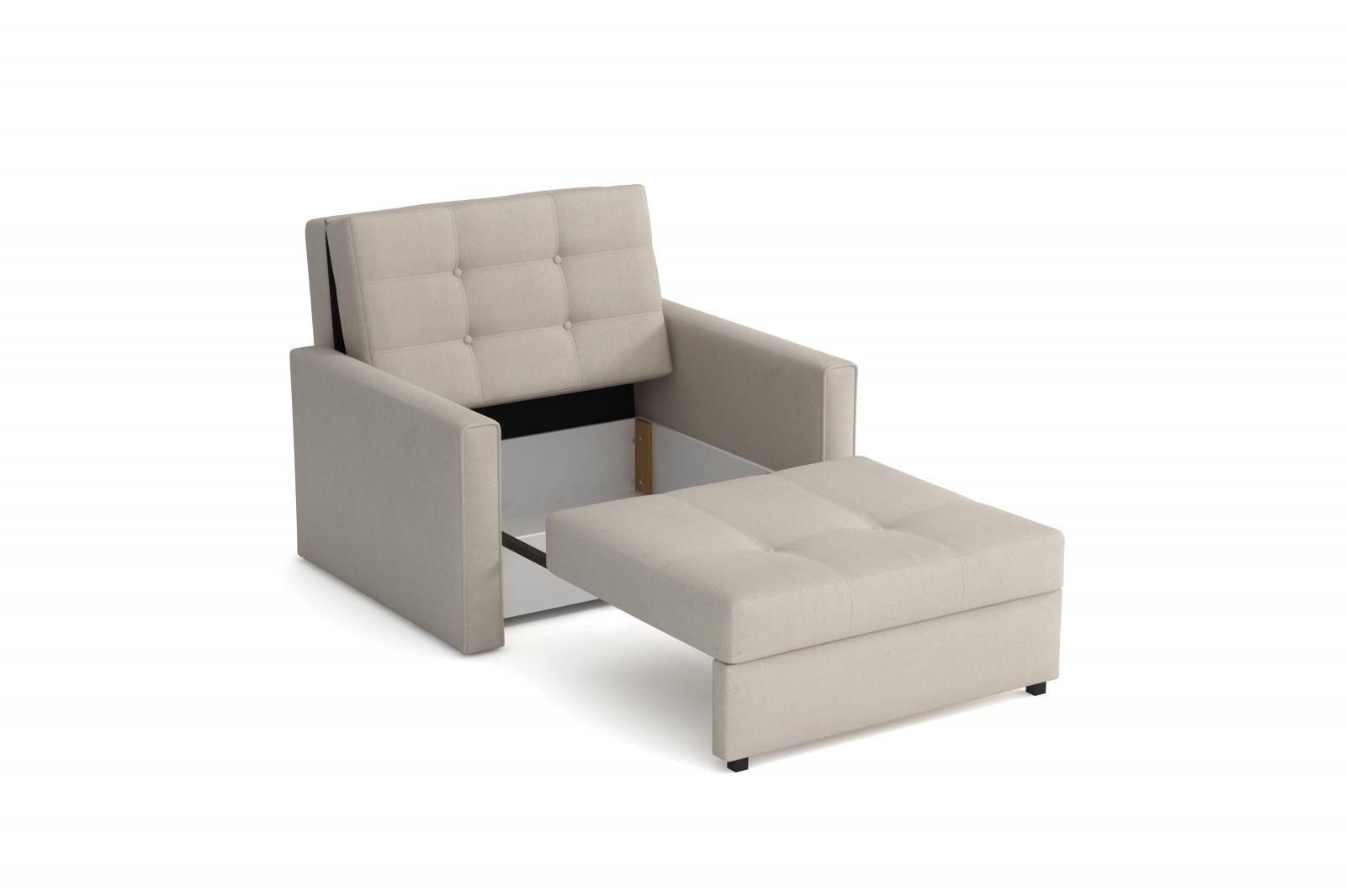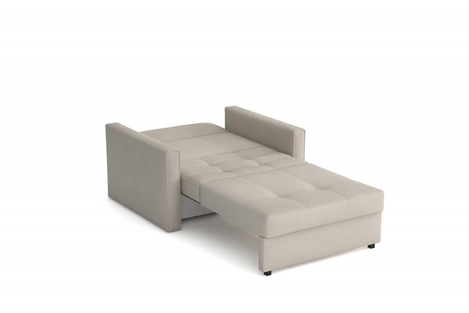 Moderní a praktické rozkládací křeslo s úložným prostorem. Jednoduchým rozložením pomocí automatu, získáte lůžko k příležitostnému přespání Vaší návštěvy, nebo kamaráda dětí. Výplň sedáku tvoří vlnité pružiny v kombinaci s PUR pěnou. Křeslo je potaženo kvalitní potahovou látkou a nabízíme ho v několika trendy odstínech. Křeslo disponuje i nepostradatelným úložným prostorem, který využijete např. na deku a polštář. V ceně křesla je 1 dekorační polštář. Výška sedu je 36cm.