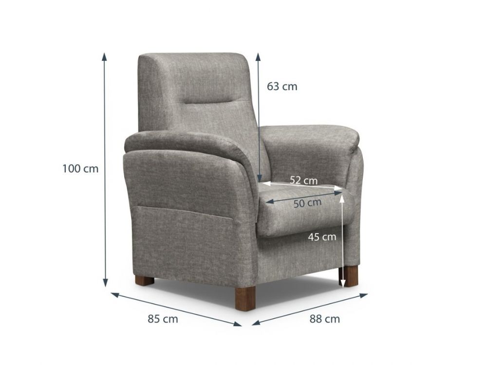 křeslo: š:88 x v:100 x h:85cm výška sedu je 45cm, hloubka sedu je 52cm