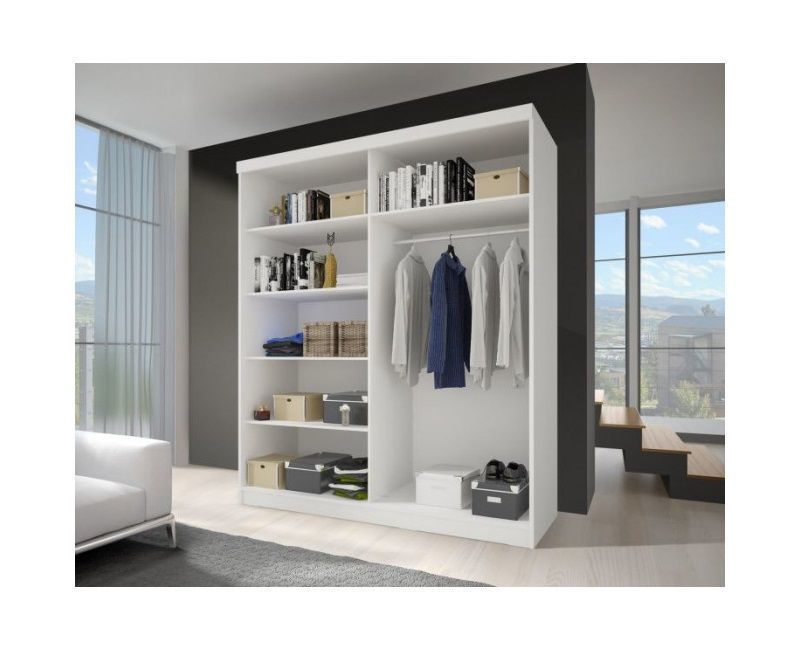Kombinovaná skříň jedna polovina je šatní a jedna polovina je policová, dvoudvéřová s posuvnými dveřmi.