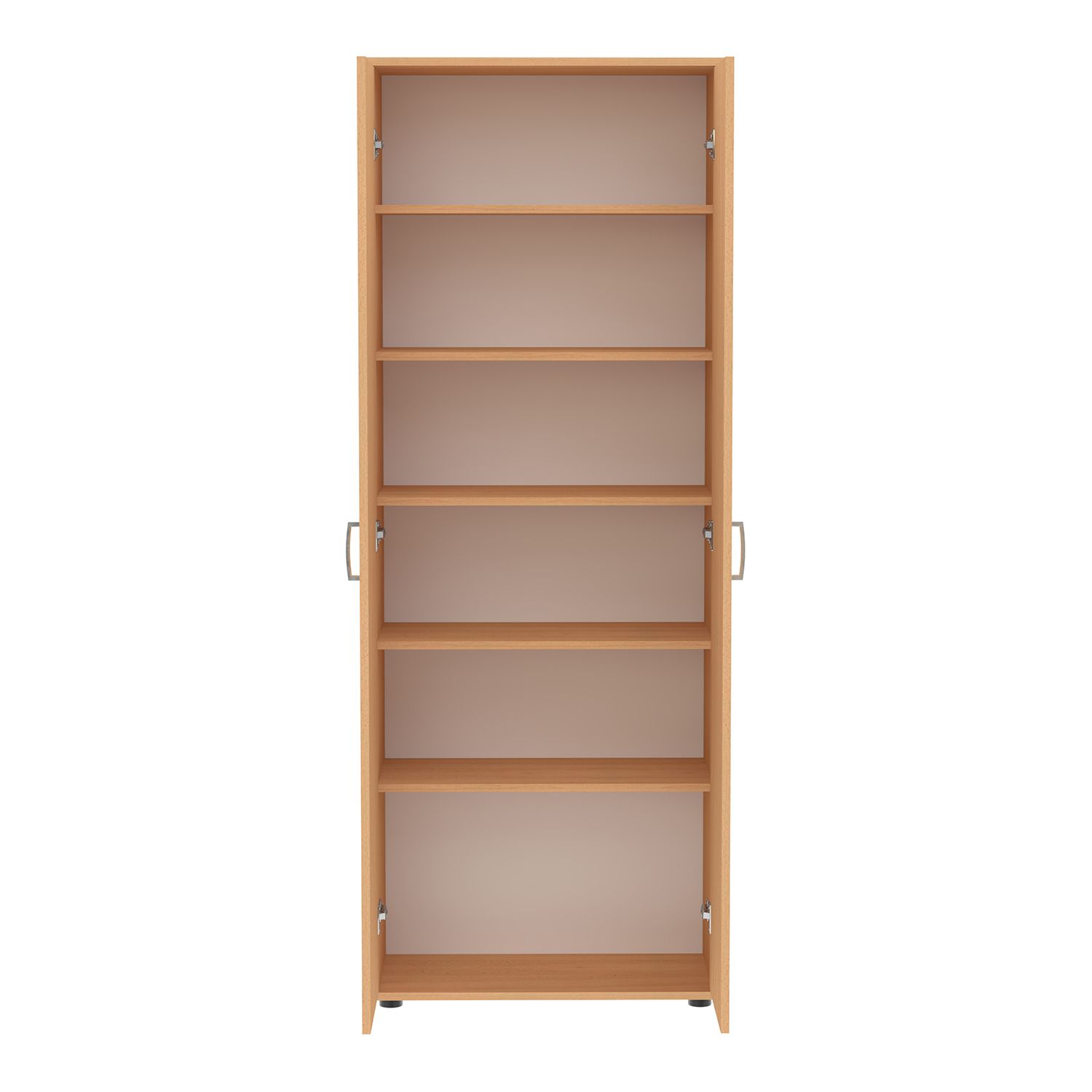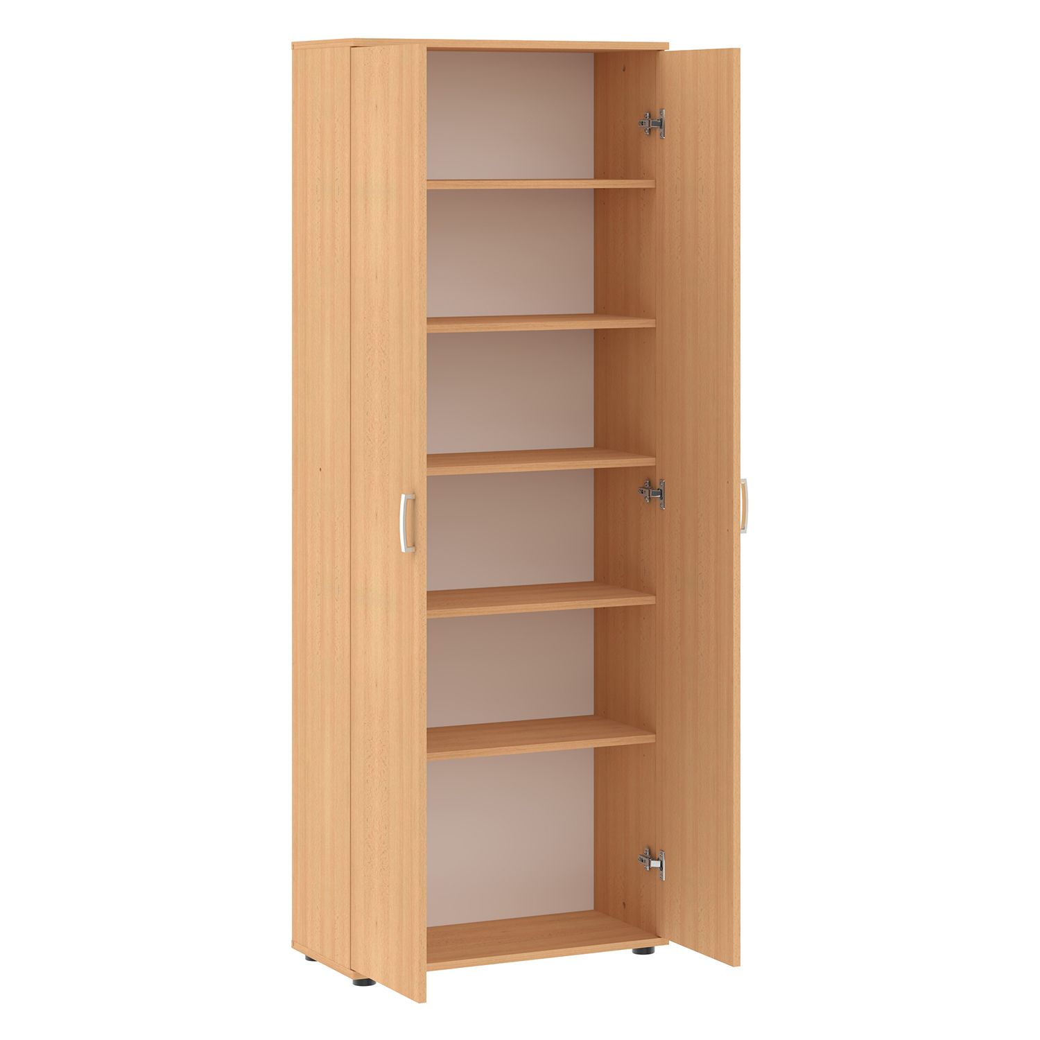 Praktická dvoudvéřová policová skříň s pěti policemi.