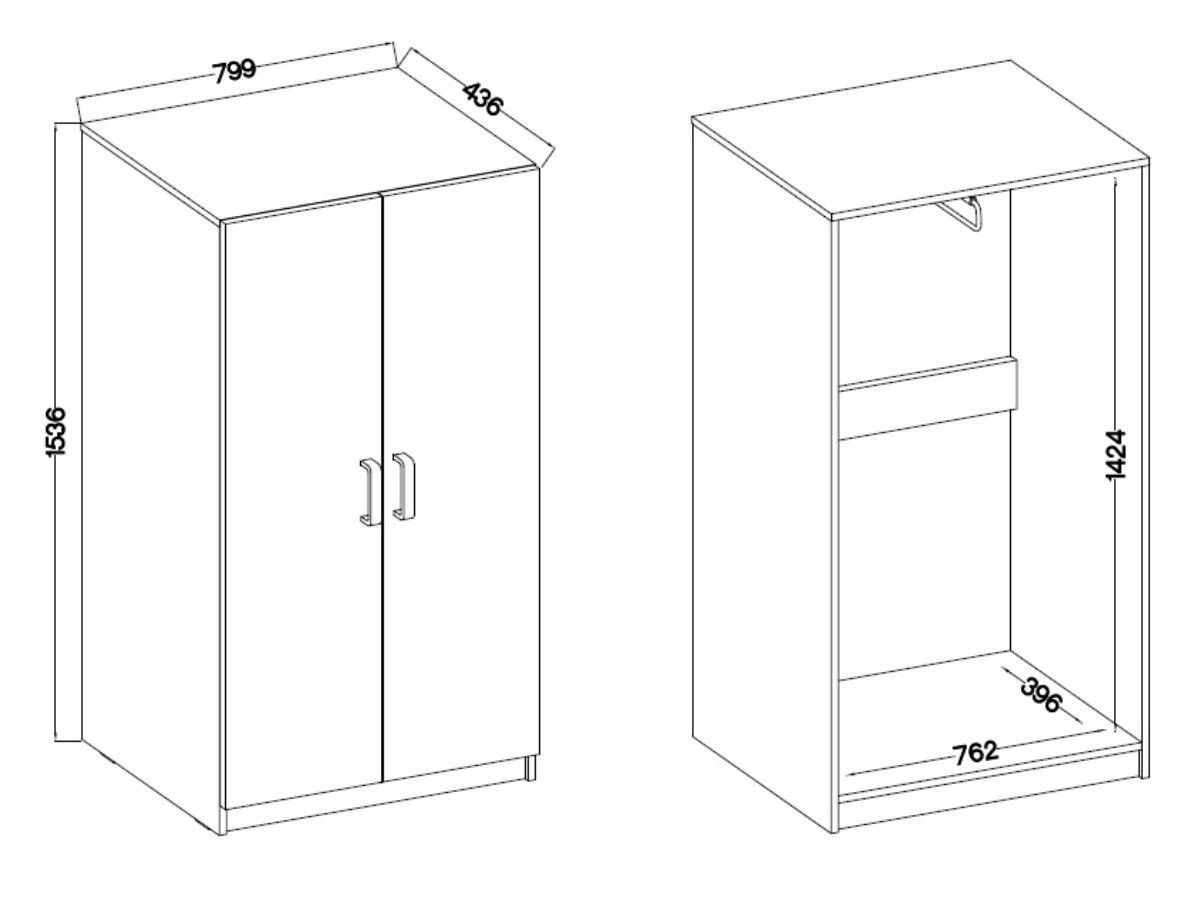Rozměry: š:80 x v:153,5 x h:43,5cm