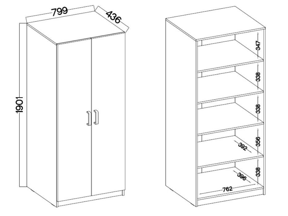 Rozměry: š:80 x v:190 x h:43,5cm