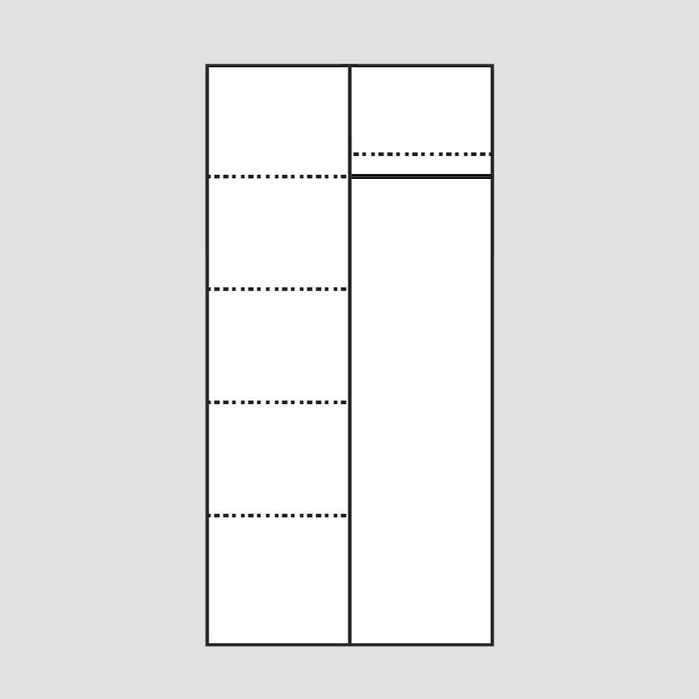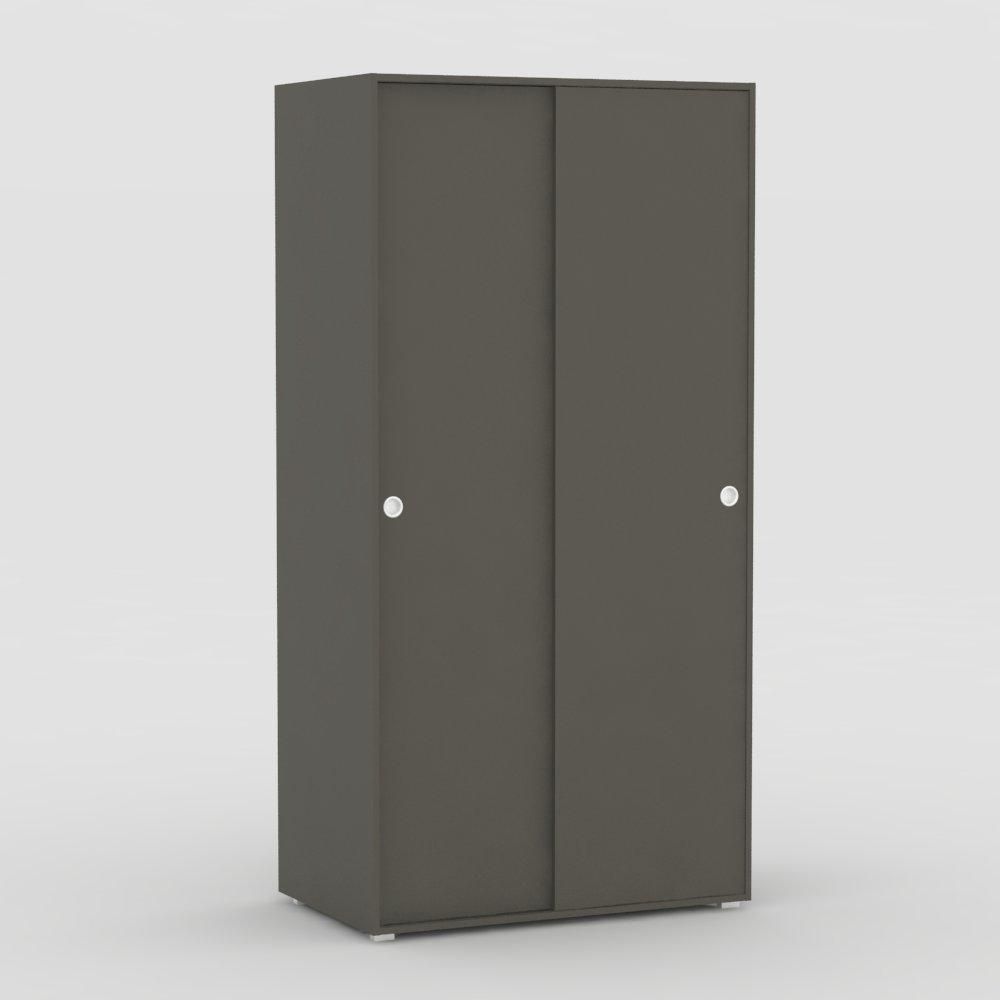 Dvoudvéřová skříň s posuvnými dveřmi, jedna polovina skříně je šatní a jedna polovina je policová. Skříň je vyrobená z DTD laminované tl.16mm.
