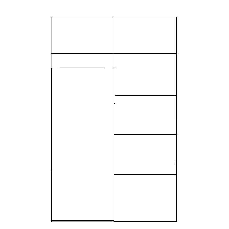 Skříň dvoudvéřová kombinovaná, polovina skříně je šatní a polovina je policová.