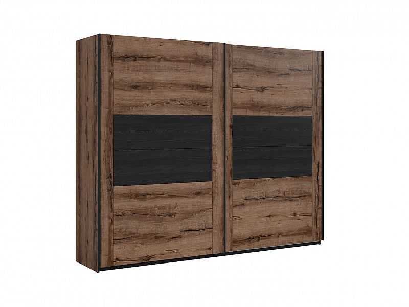 Moderní a praktická šatní skříň Vám poskytne velké množství tolik potřebného úložného prostoru. Tato šatní skříň je vyrobena z lamina v atraktivním barevném provedení dub monastery/dub černý. Jde o sofistikovaný vzhled, který se hodí do různých interiérů a to ať už klasických, nebo moderních. Posuvné dveře šetří prostor v místnosti a usnadňují tak přístup ke všemu uloženému oděvu.